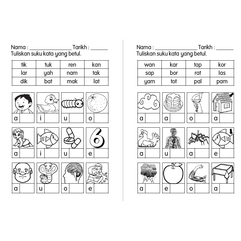 Lembaran Kerja Prasekolah Eja Dan Tulis Suku Kata Kvkv Suku Kata Bahasa Melayu Latihan