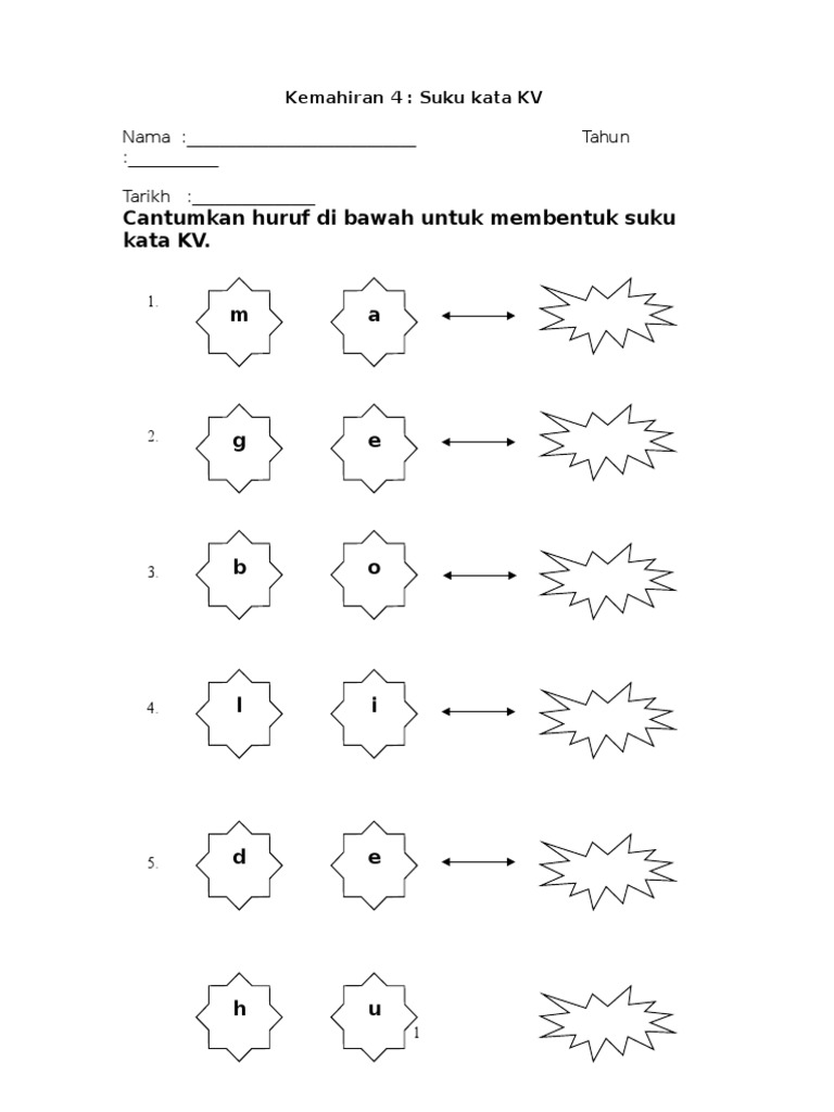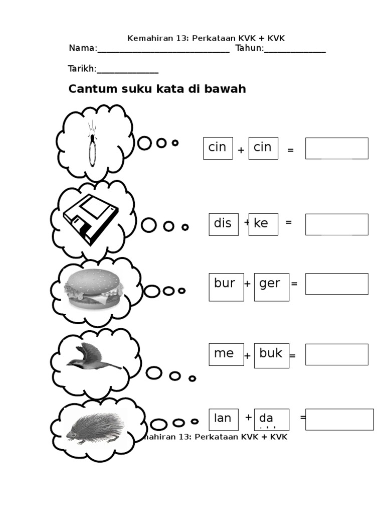 Lembaran Kerja Bahasa Melayu Suku Kata Kv Kvk Pdf